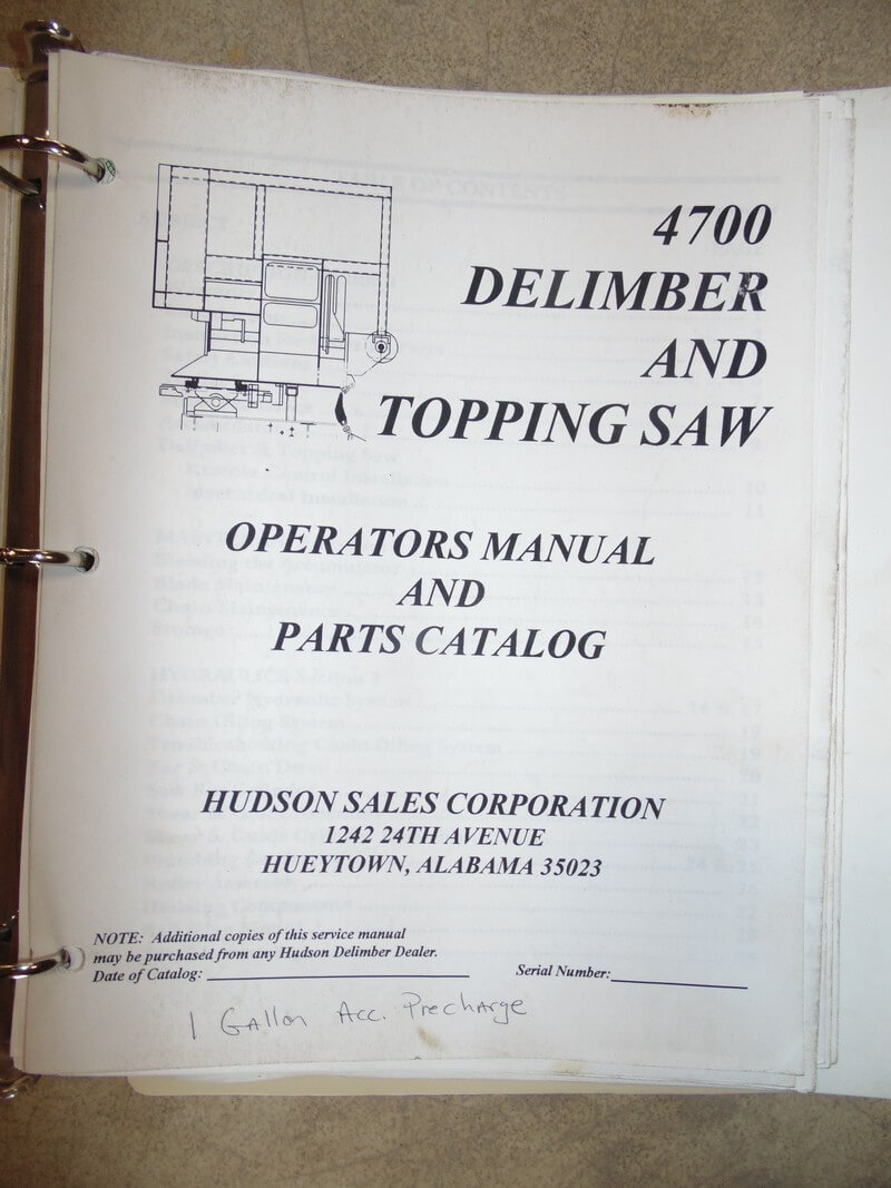 4700 Hudson Delimber & Topping Saw Operator & Parts Manual
