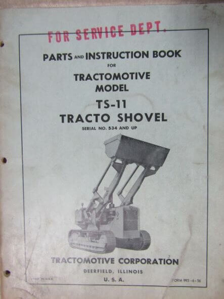 534 Tractomotive Corporation TS11 Tracto Shovel Parts and Instruction Book