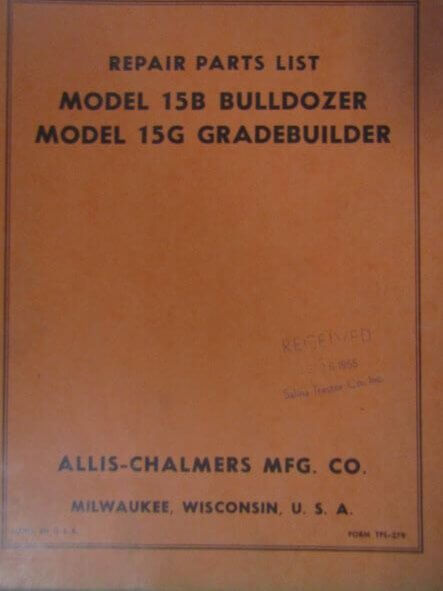 Allis Chalmers 15B Bulldozer and 15G Grade Builder Repair Parts List