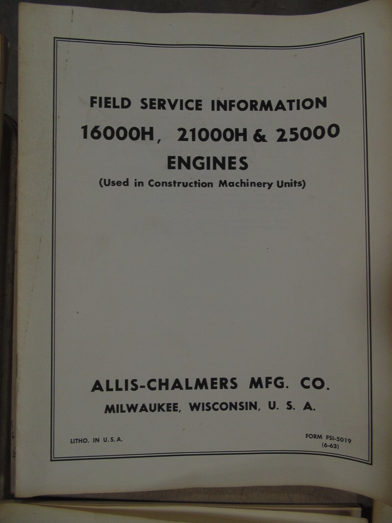 Allis Chalmers 16000H, 21000H, & 25000 Engines Service Manual