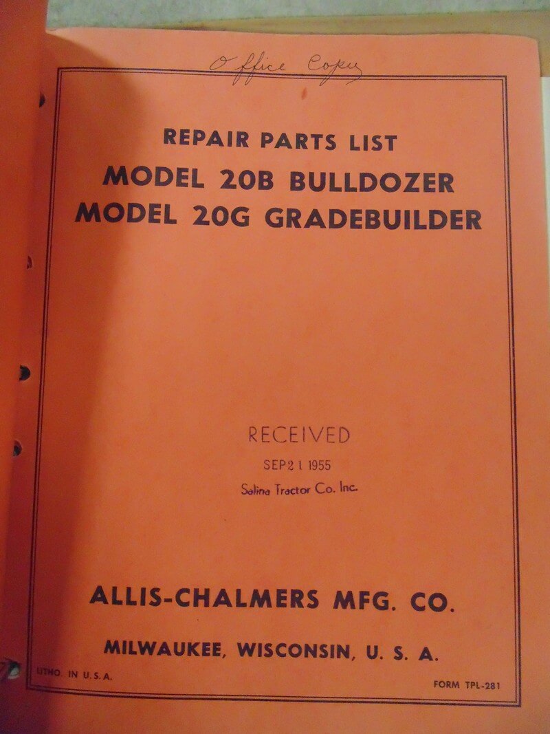 Allis Chalmers 20B Bulldozer and 20G Gradebuilder Parts Manual