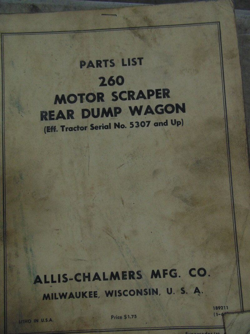 Allis Chalmers 260 Motor Scraper and Rear Dump Wagon Parts Manual