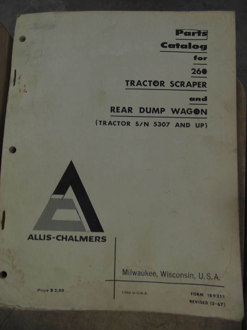 Allis Chalmers 260 Motor Scraper & Rear Dump Wagon Parts Manual