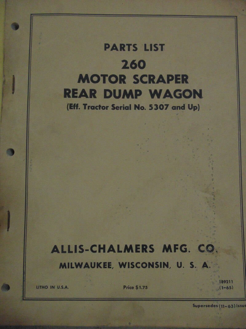 Allis Chalmers 260 Motor Scraper Rear Dump Wagon Parts Manual