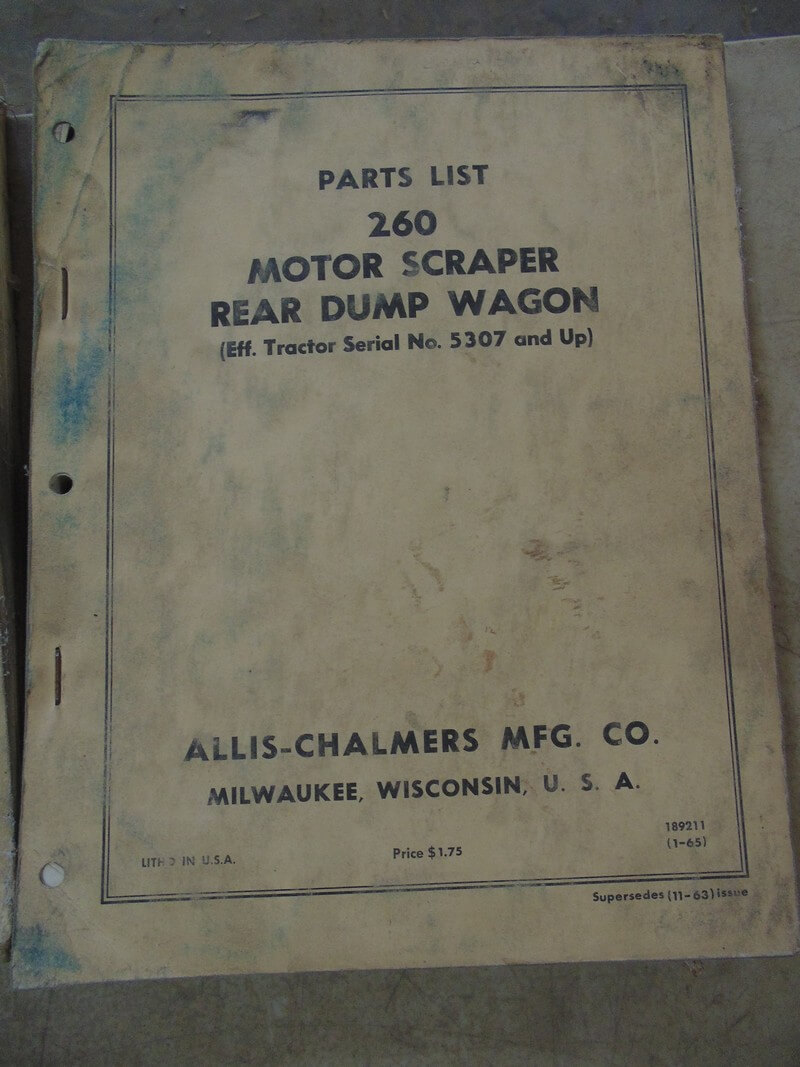 Allis Chalmers 260 Motor Scraper Rear Dump Wagon Parts Manual
