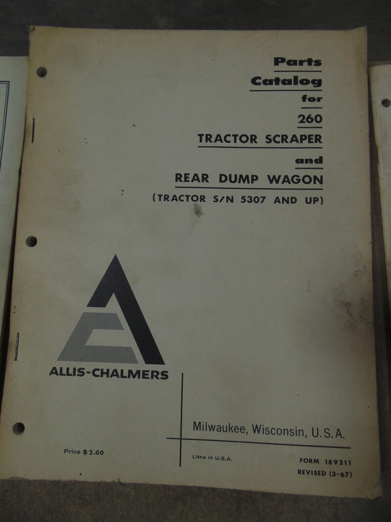 Allis Chalmers 260 Tractor Scraper & Rear Dump Wagon Parts Manual
