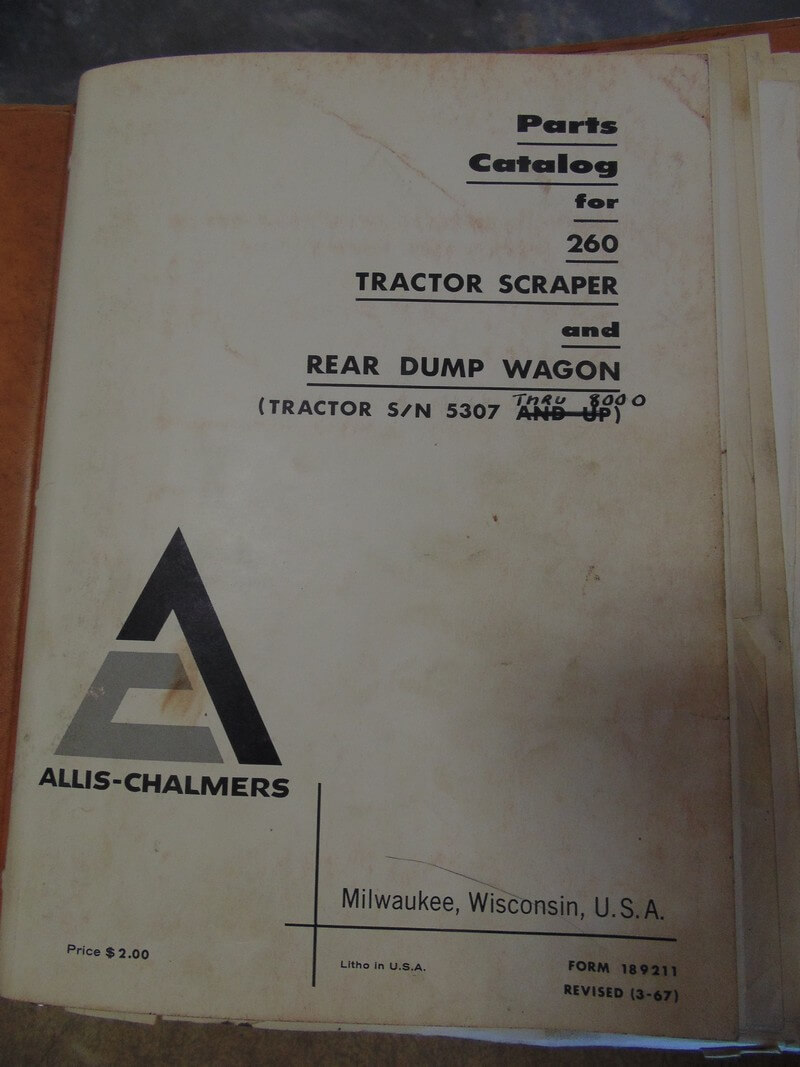 Allis Chalmers 260 Tractor Scraper & Rear Dump Wagon Parts Manual