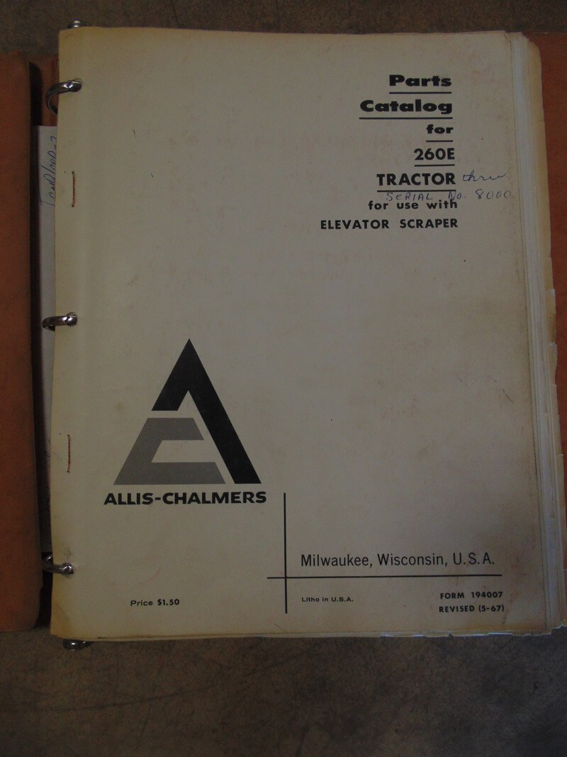 Allis Chalmers 260E Tractor for use with Elevator Scraper Parts Manual