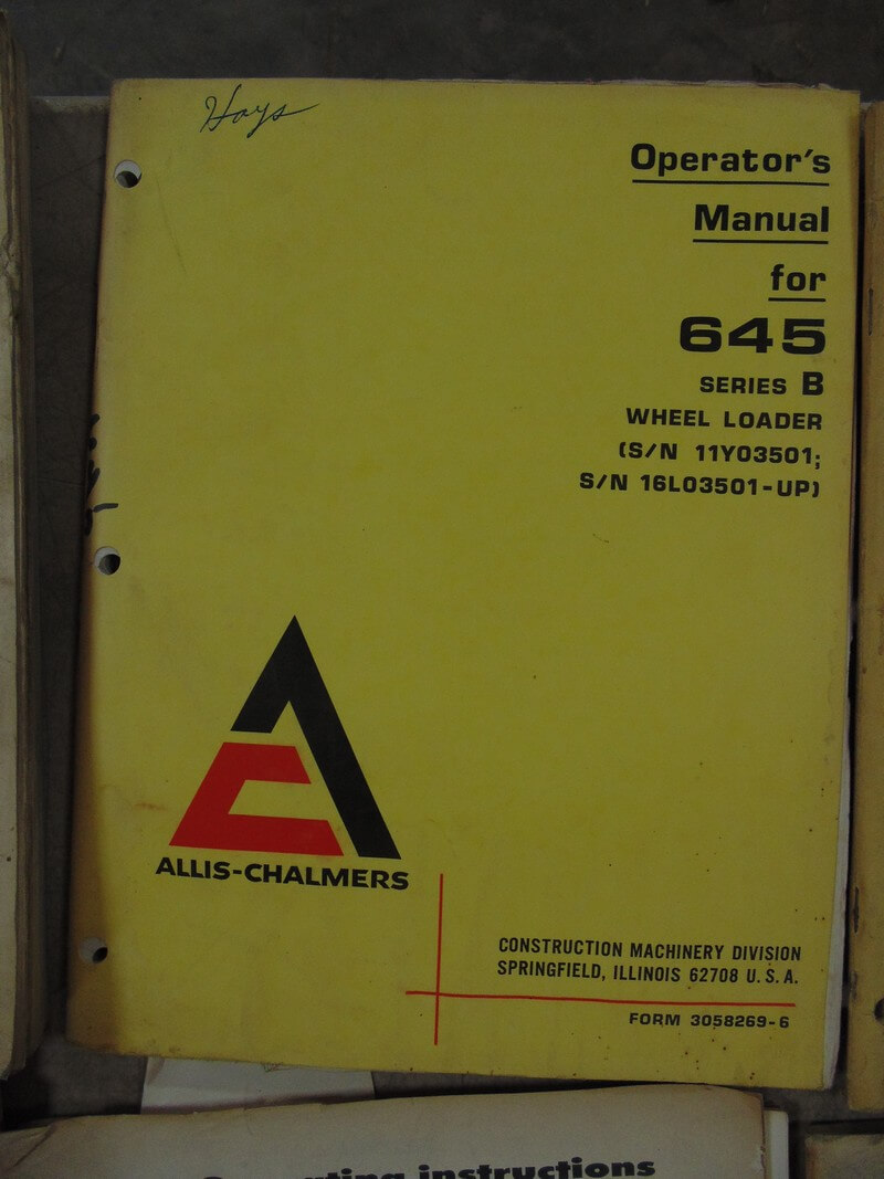 Allis Chalmers 645 Series B Wheel Loader Operator Manual