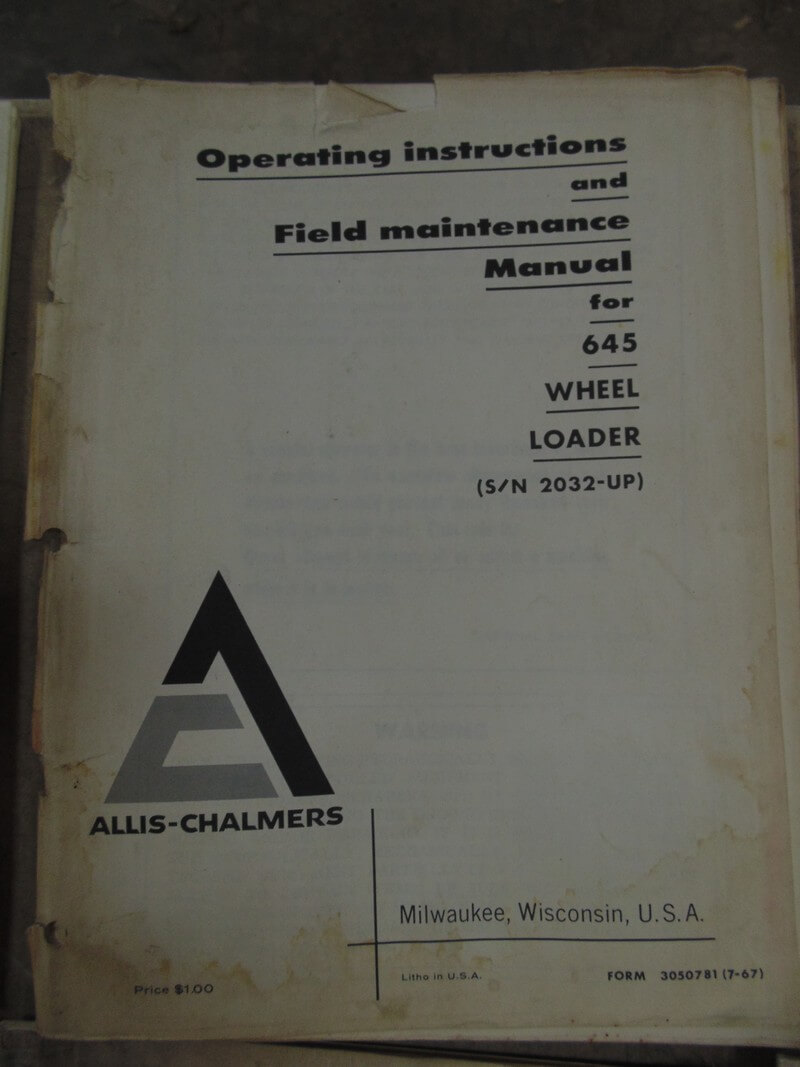 Allis Chalmers 645 Wheel Loader Operator Manual
