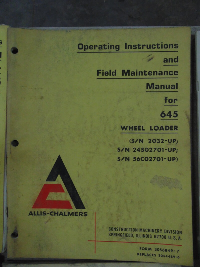 Allis Chalmers 645 Wheel Loader Operator Manual
