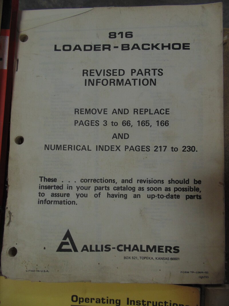 Allis Chalmers 816 Loader Backhoe Parts Manual