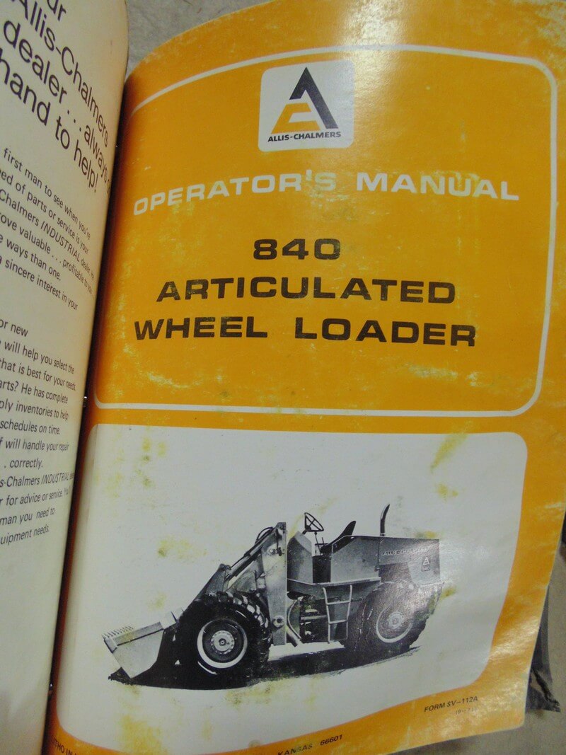 Allis Chalmers 840 Articulated Wheel Loader Operator’s Manual