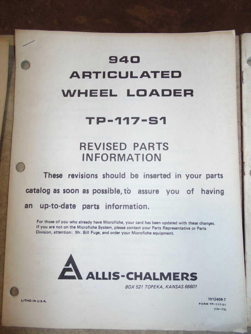 Allis Chalmers 940 Articulated Wheel Loader Parts Manual