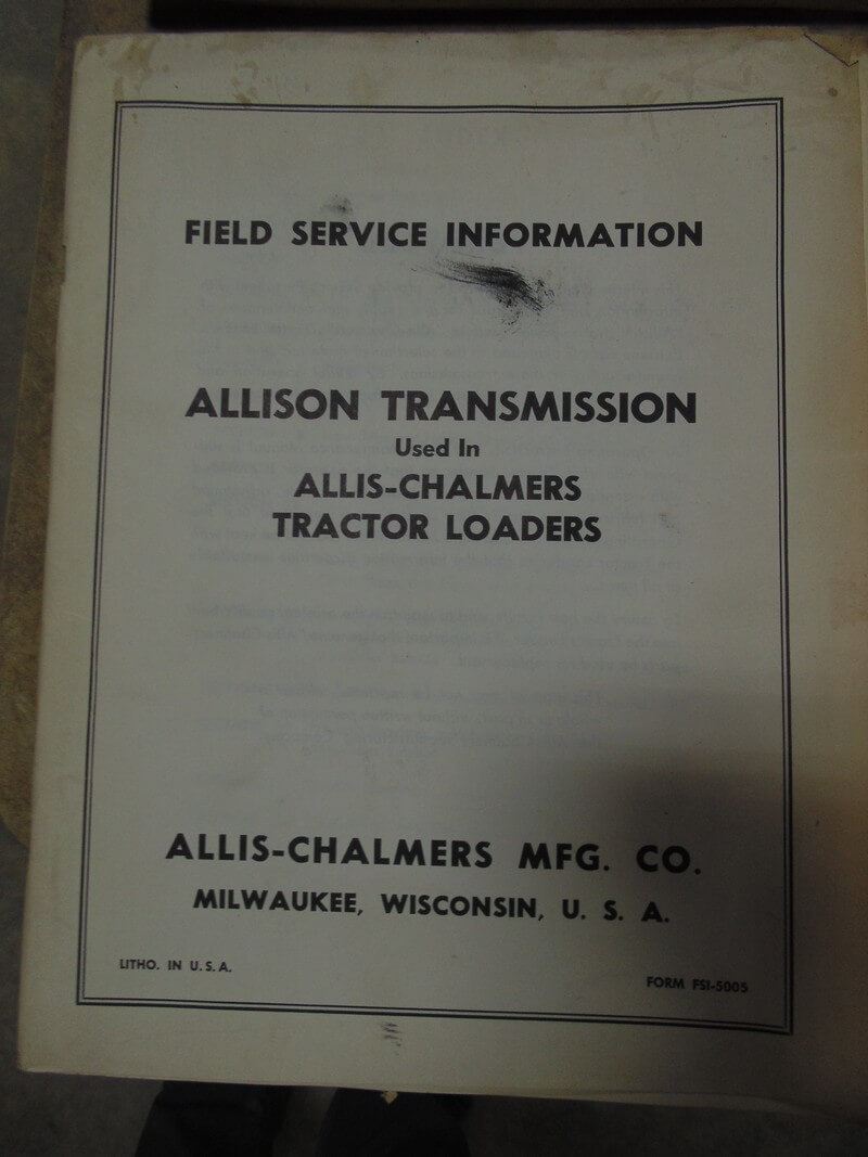 Allis Chalmers Allison Transmission for use in Tractor Loader Service Manual
