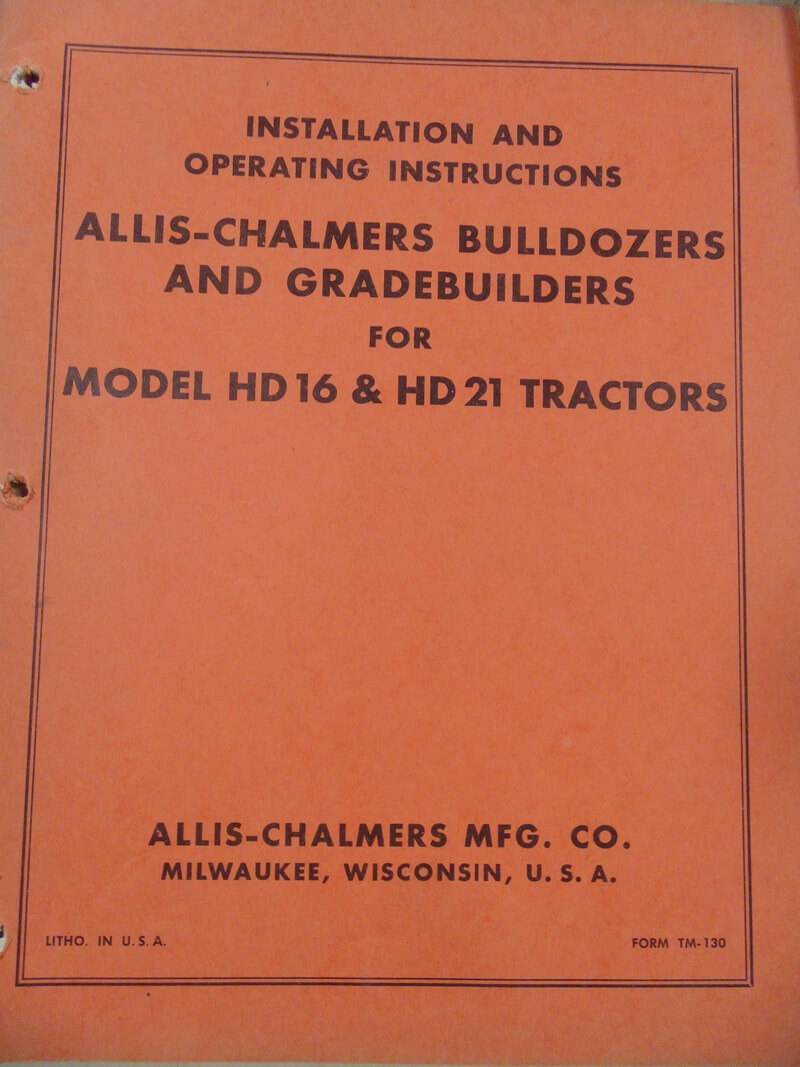 Allis Chalmers Bulldozers & Grade Builders for Model HD16 & HD21 Tractor Operator Manual