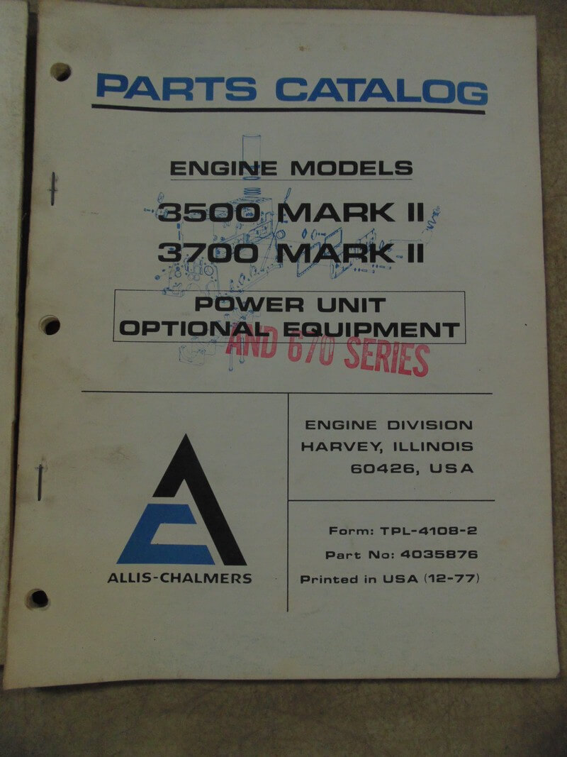Allis Chalmers Engine Models 3500 Mark II, 3700 Mark II Parts Manual