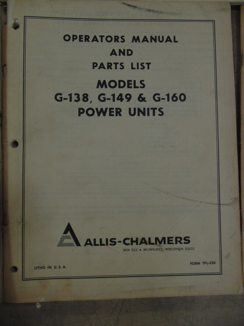 Allis Chalmers G-138, G-149 & G-160 Power Units Operator and Parts Manual