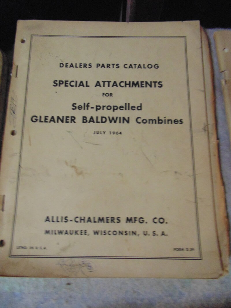 Allis Chalmers Gleaner Baldwin Combine Special Attachments Self Propelled Parts Manual