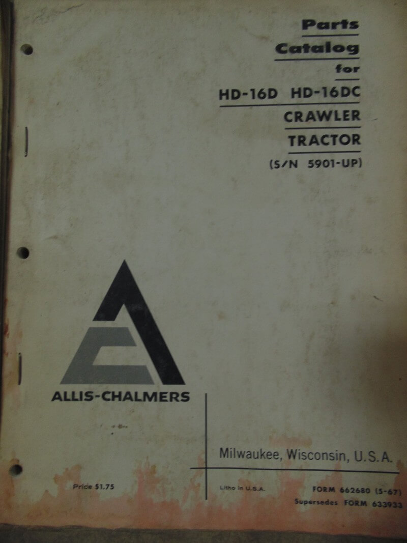 Allis Chalmers HD-16D, HD16DC Crawler Tractor Parts Manual
