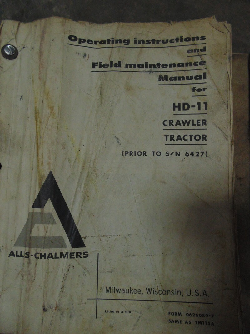 Allis Chalmers HD11 Crawler Tractor Operator, Parts and Maintenance Manual