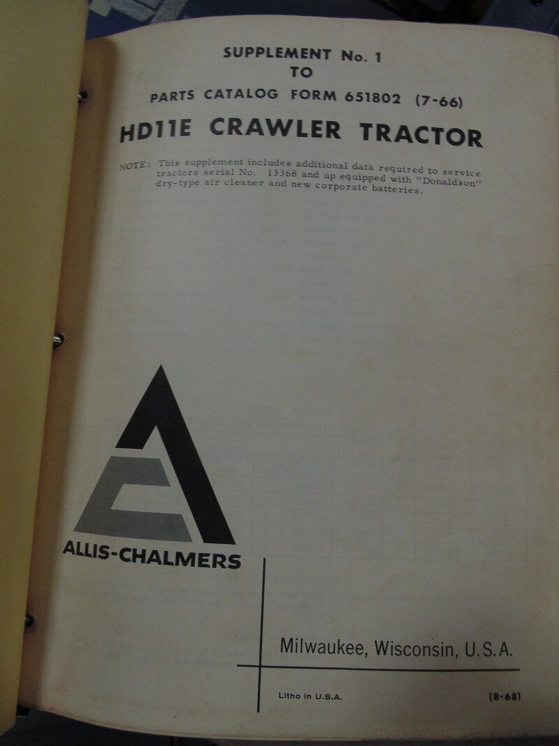 Allis Chalmers HD11 Crawler Tractor Supplement Parts Manual