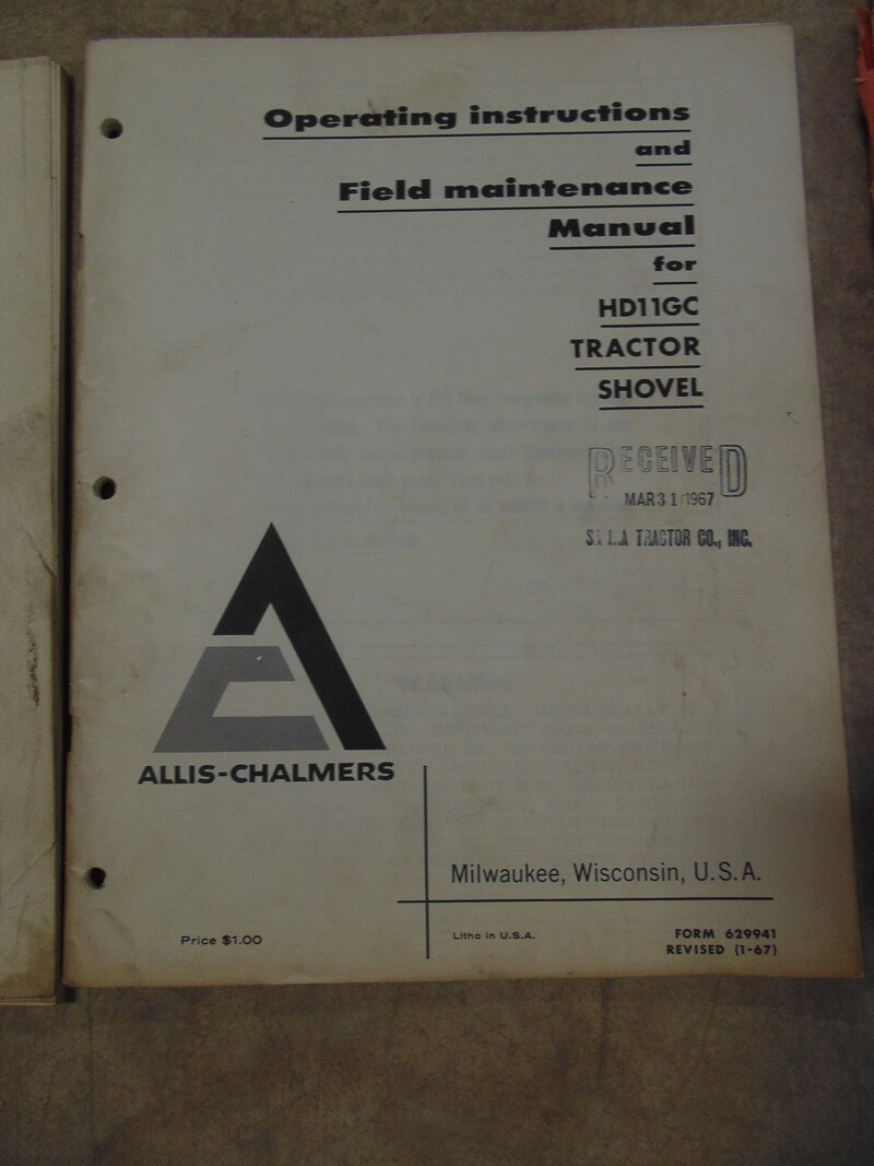 Allis Chalmers HD11GC Tractor Shovel Operator Manual quantity
