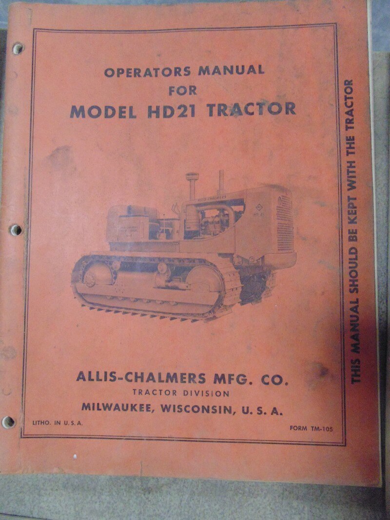 Allis Chalmers HD21 Tractor Operator Manual