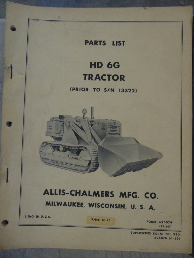 Allis Chalmers HD6G Tractor Parts Manual