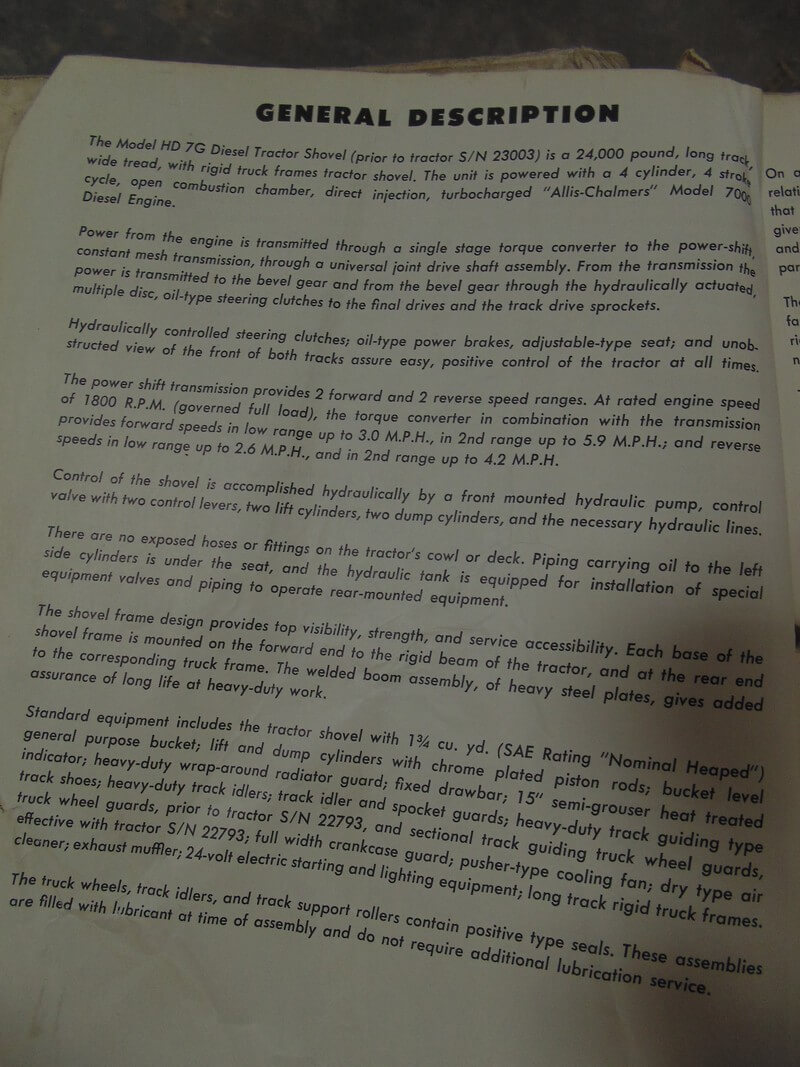 Allis Chalmers HD7G Diesel Tractor Shovel Parts Manual