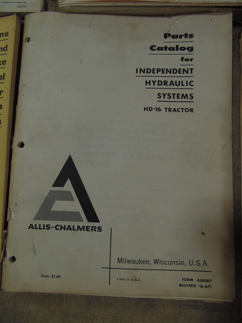 Allis Chalmers Independent Hydraulic Systems for HD-16 Parts Manual