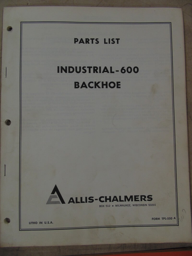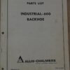 Allis Chalmers Industrial 600 Backhoe Parts Manual