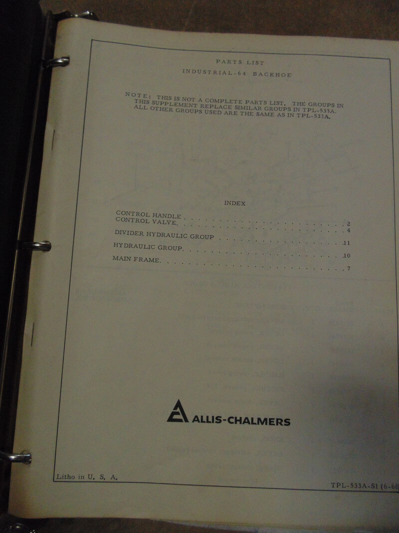 Allis Chalmers Industrial 64 Backhoe Parts Manual quantity