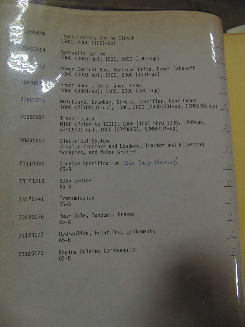 - Transmission- M100 (prior to 1001); 100B (1001 thru 1208, 1209-up, 67S05001-up); 100C (27Y08001, 57M08001-up)