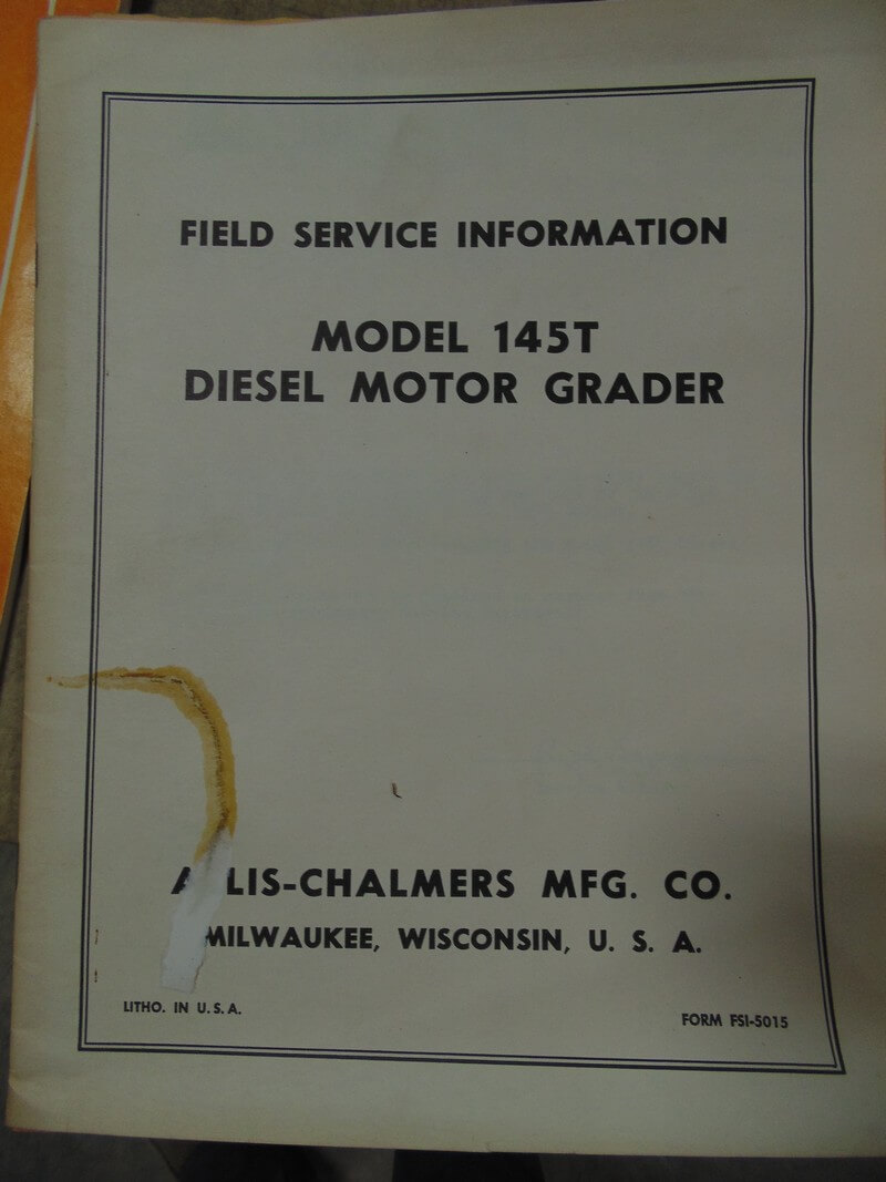 Allis Chalmers Model 145T Diesel Motor Grader Service Manual