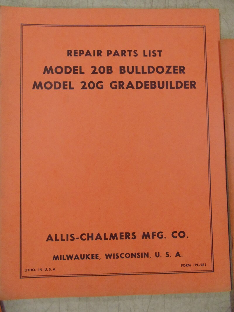 Allis Chalmers Model 20B Bulldozer and 20G Grade Builder Parts Manual