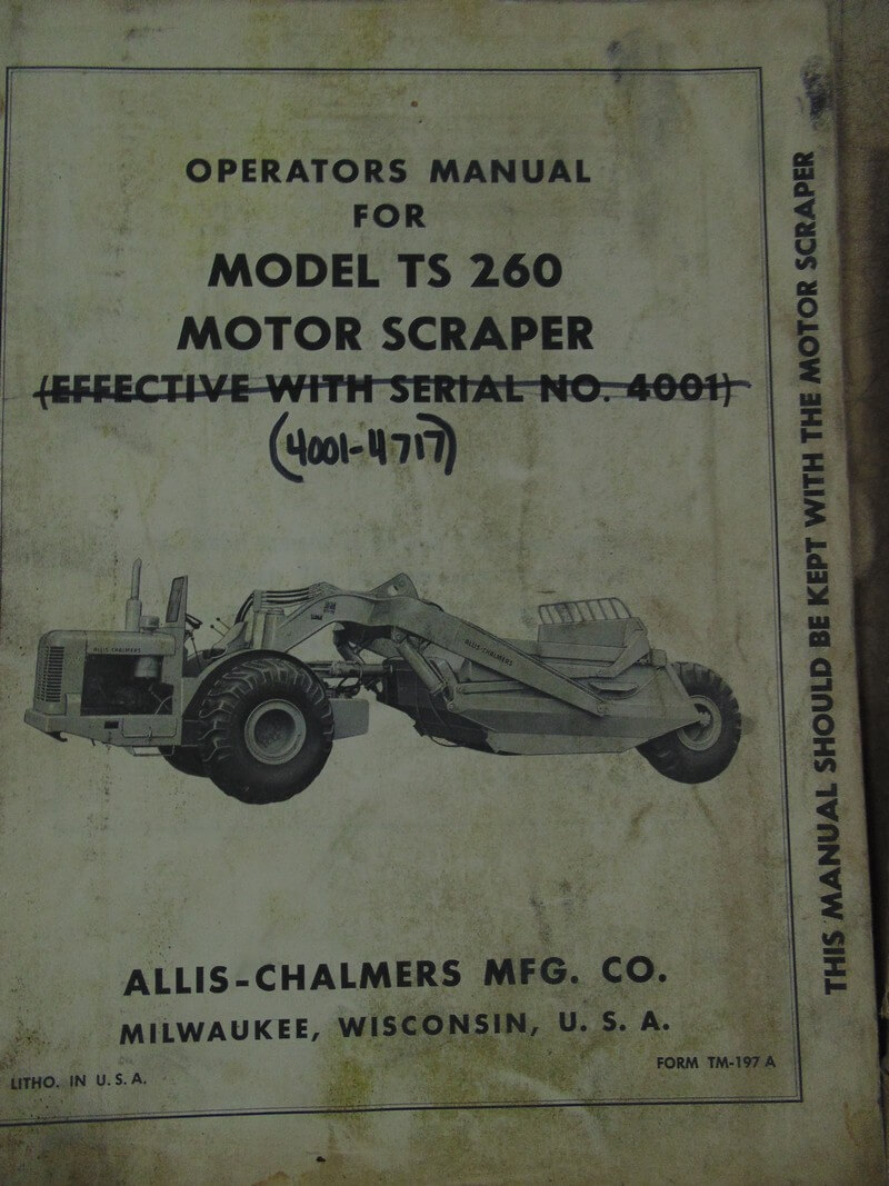 Allis Chalmers Model 260 Motor Scraper Operator Manual