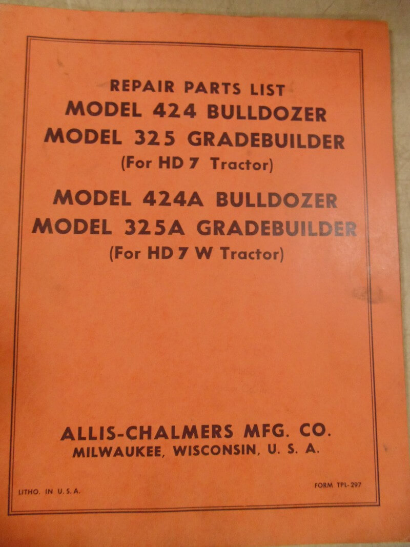 Allis Chalmers Model 424 Bulldozer, 325 Grade Builder (for HD7 Tractor); Model 424A Bulldozer and 325A Grade Builder (for HD7 W Tractor) Parts Manual