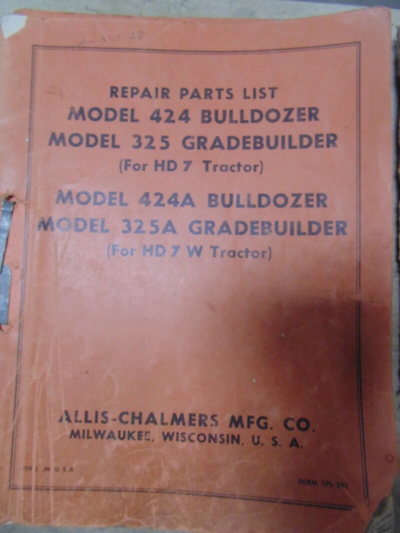 Allis Chalmers Model 424 Bulldozer and 325 Grade Builder for HD7 Tractor; Model 424A Bulldozer and 325A Grade Builder for HD7W Tractor Repair Manual