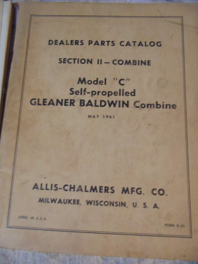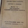 Allis Chalmers Model C Self Propelled Gleaner Baldwin Combine Parts Manual