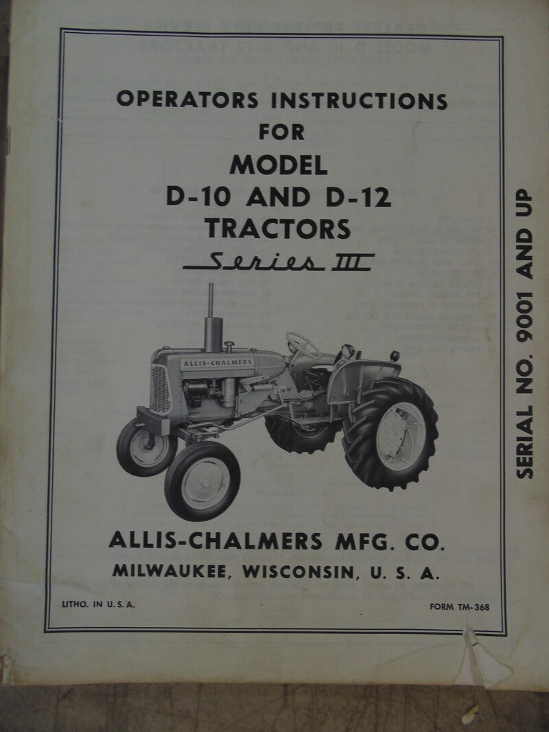 Allis Chalmers Model D-10 & D-12 Tractor Series III Operator Manual