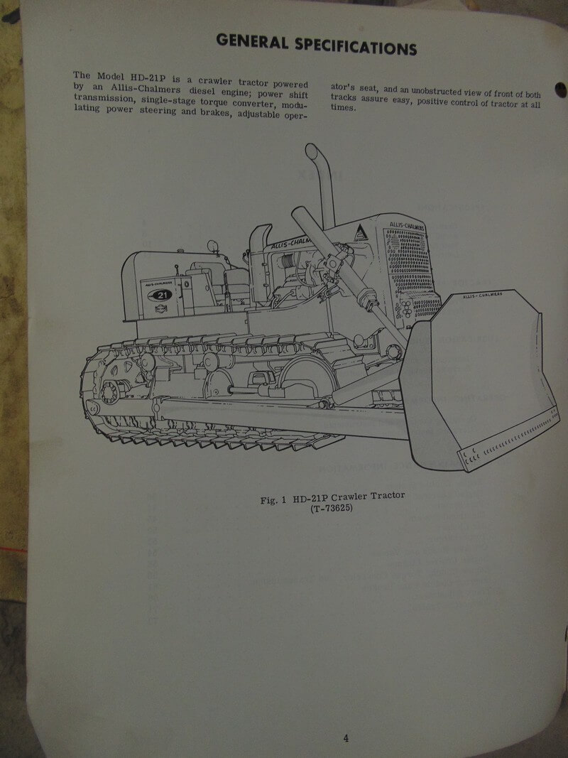 Allis Chalmers Model HD-21P Crawler Tractor Operator Manual