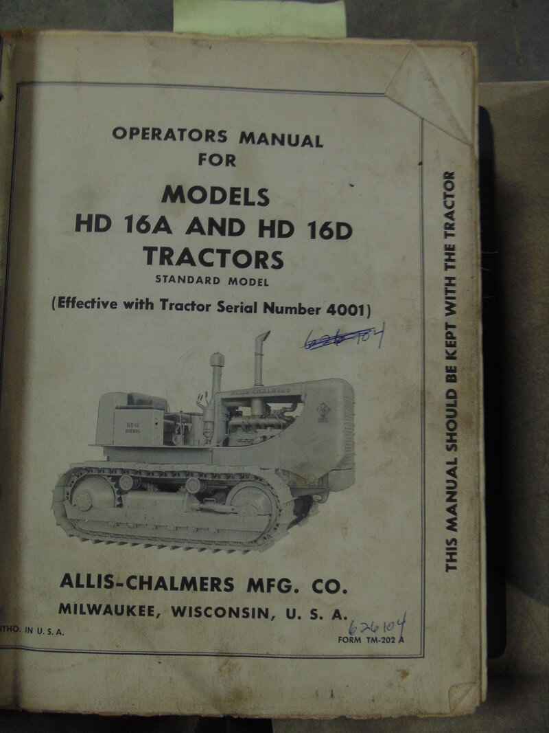 Allis Chalmers Model HD16A & HD16D Tractors Operator, Service and Parts Manual