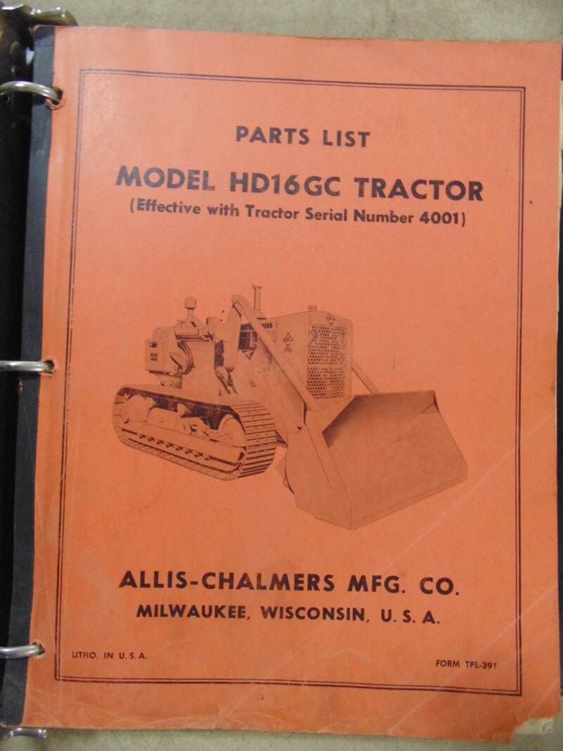 Allis Chalmers Model HD16GC Tractor Parts List