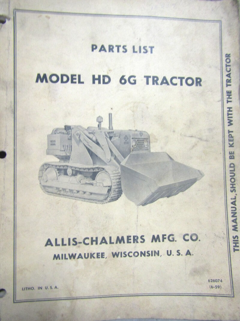 Allis Chalmers Model HD6G Tractor Parts List