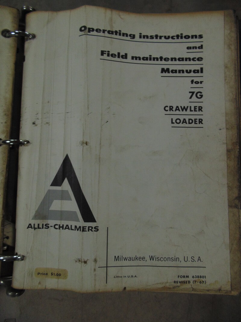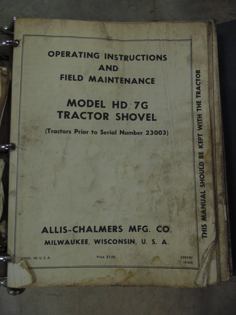 Allis Chalmers Model HD7G Tractor Shovel and Crawler Loader Operator, Maintenance and Parts Manual