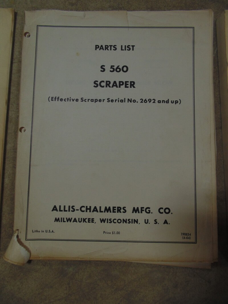 Allis Chalmers Model S560 Scraper Parts Manual