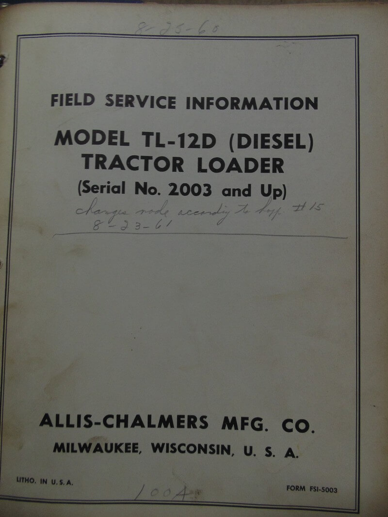 Allis Chalmers Model TL-12D (Diesel) Tractor Loader Maintenance Manual