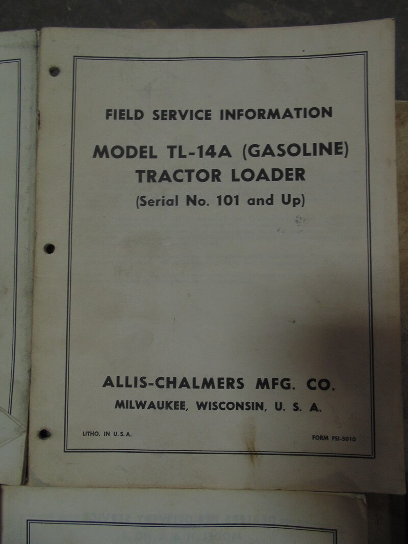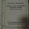 Allis Chalmers Model TL-14A (Gasoline) Tractor Loader Field Service Information Manual