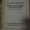 Allis Chalmers Model TL-14DA (Diesel) Tractor Loader Field Service Information Manual